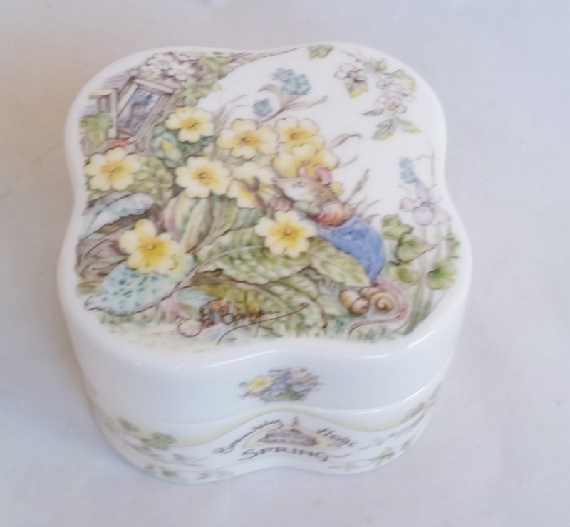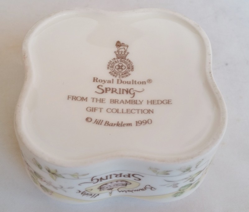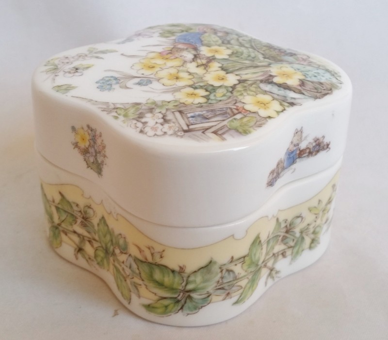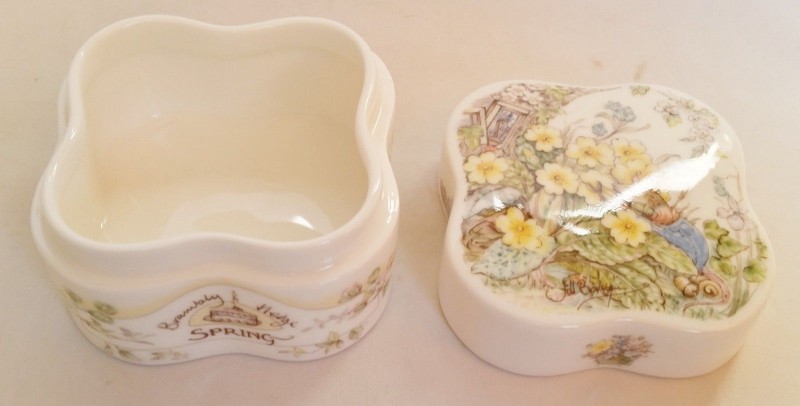 A “Spring” clover shaped trinket box designed by Jill Barklem from the Royal Doulton Brambly Hedge Gift Collection.
