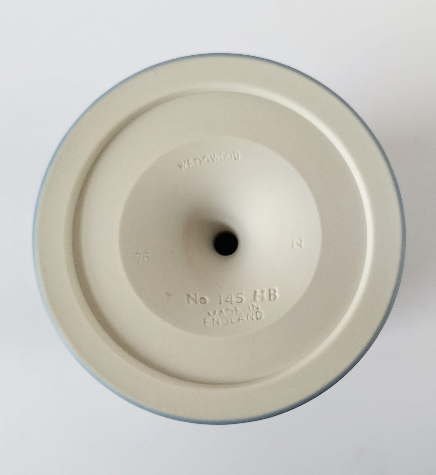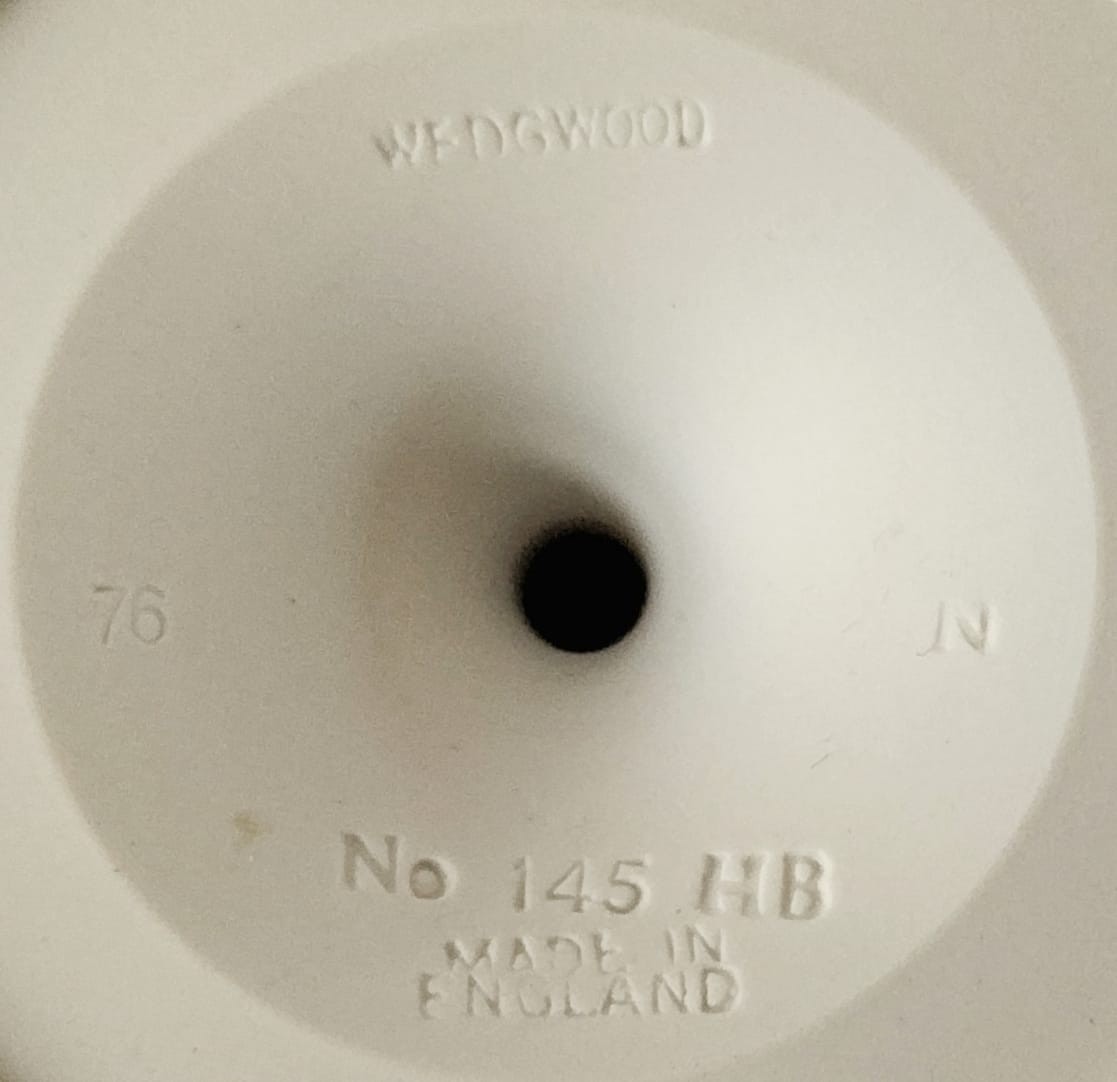 The chalice goblet is number 145 and stands approximately 5 inches tall and measures around 3 1/4 inches in diameter. It is stamped "Wedgwood Made in England No 145" on the base along with the initials HB.