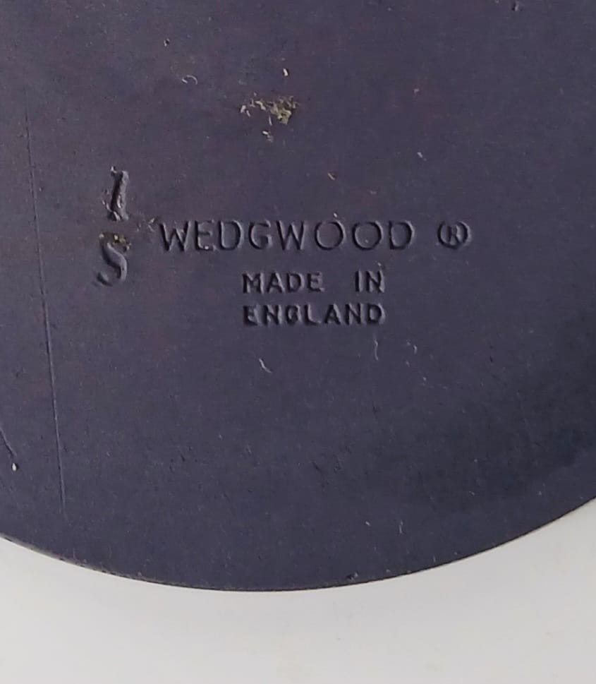 The medallion measures approximately 2 3/4 inches in diameter and is impressed on the back "Wedgwood Made in England" .