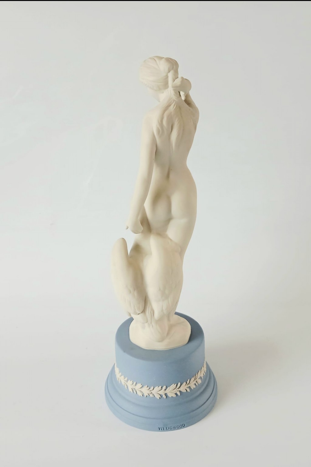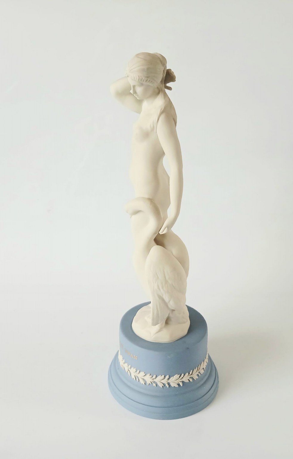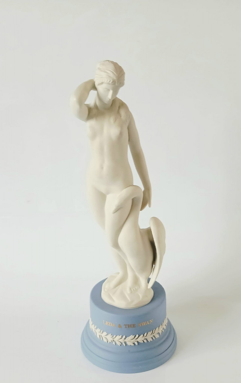 A Wedgwood blue and white jasperware figurine of Leda and The Swan.