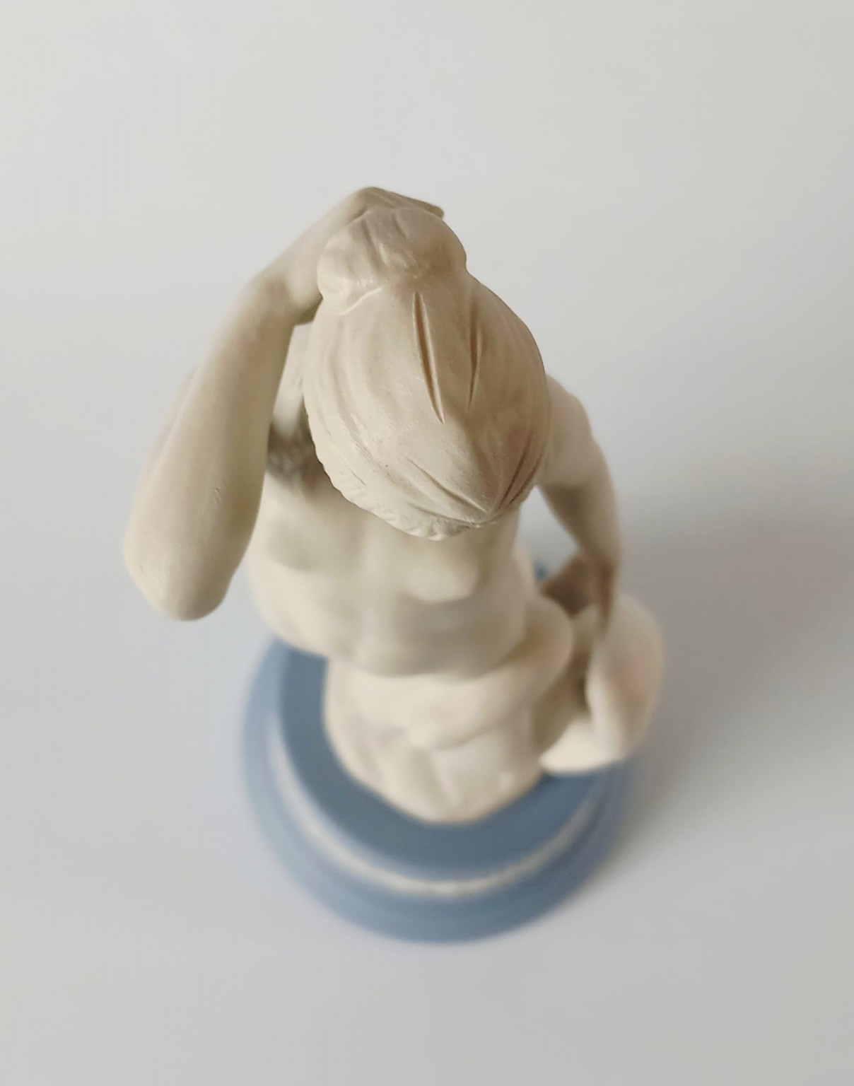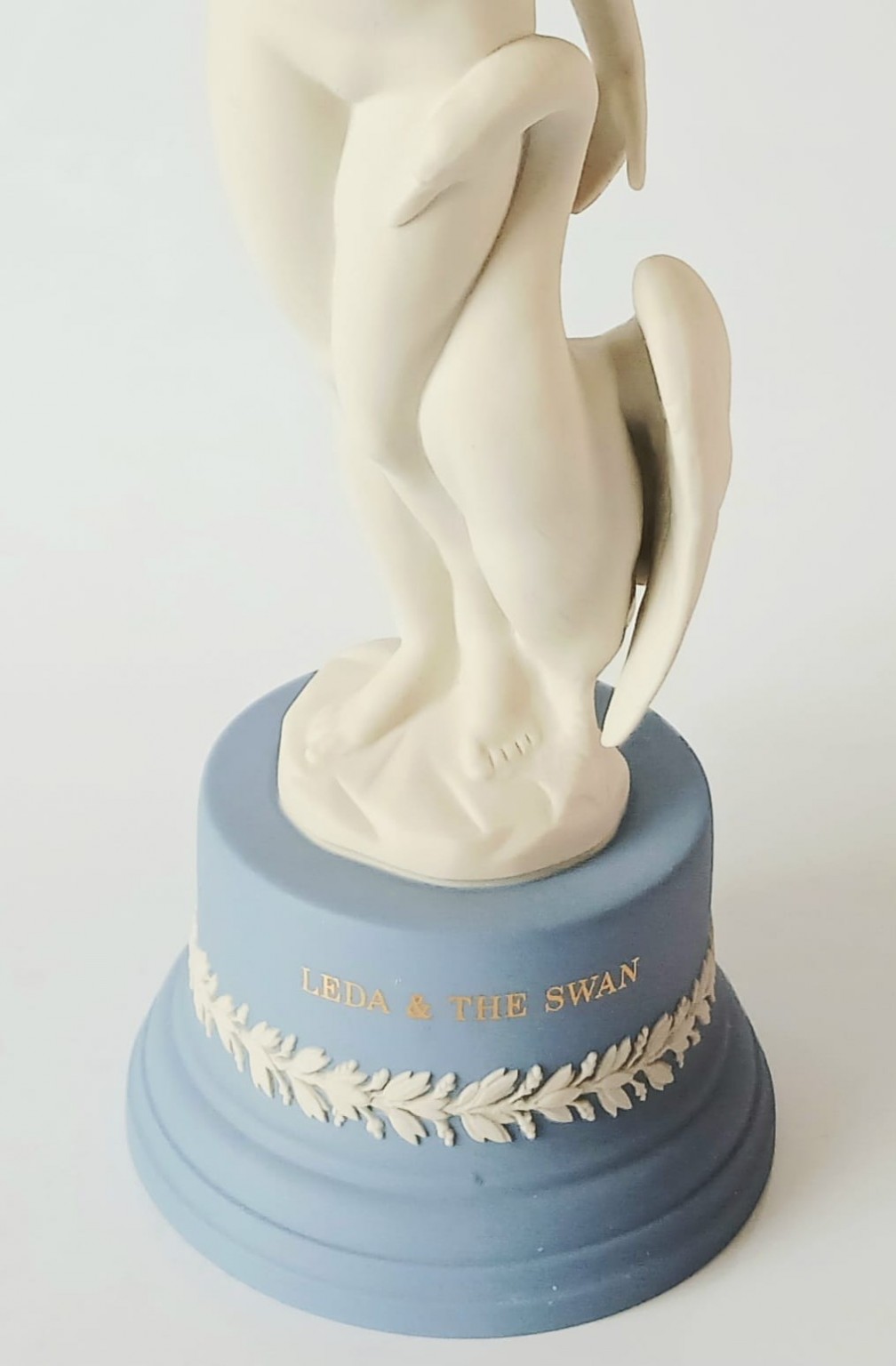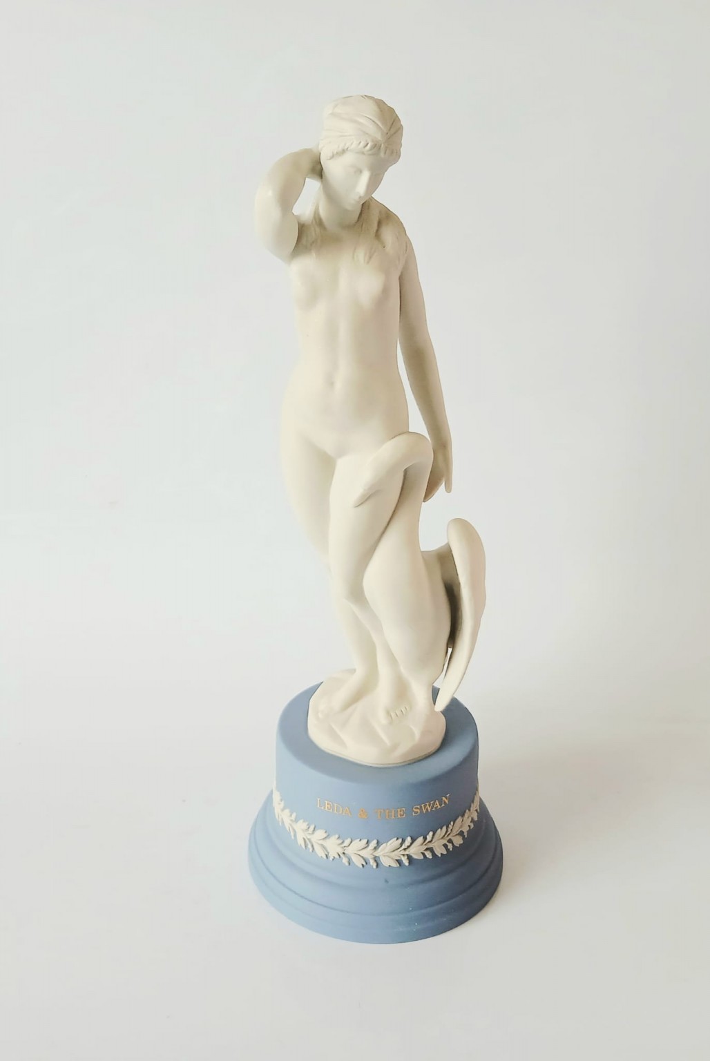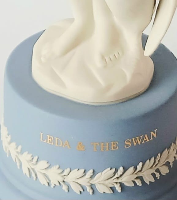 A Wedgwood blue and white jasperware figurine of Leda and The Swan.